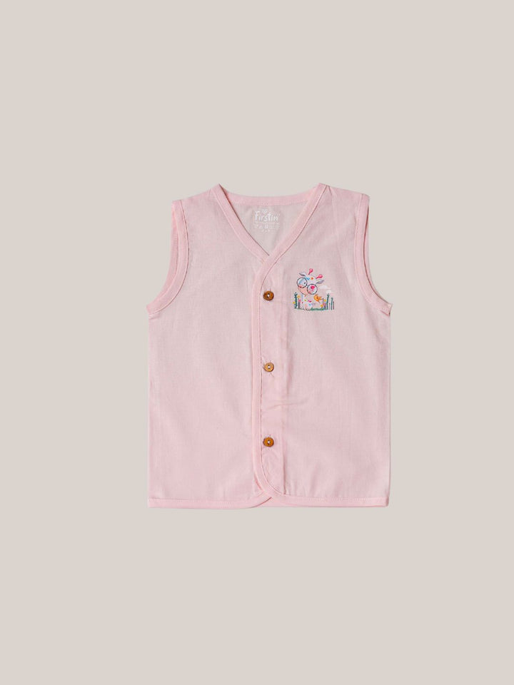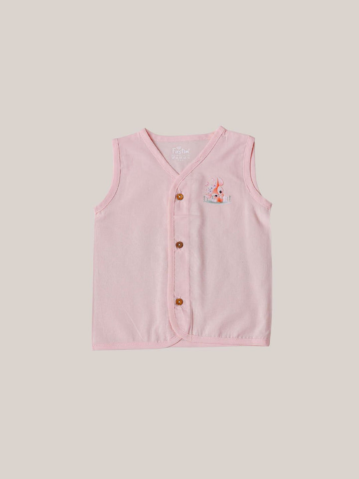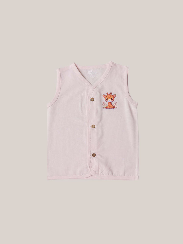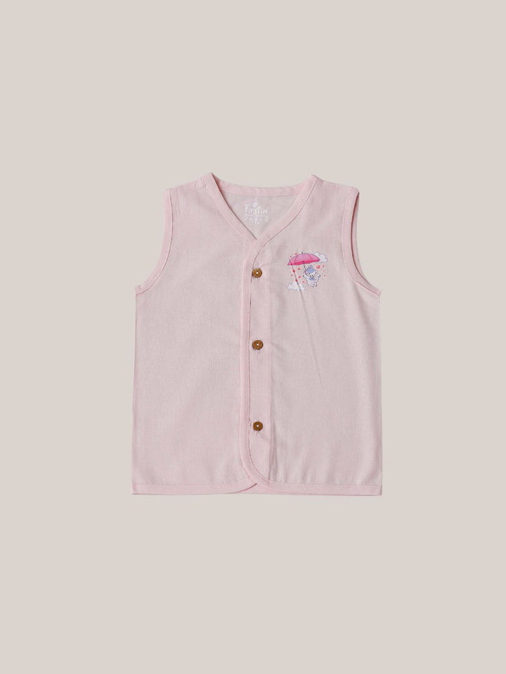 Keep your baby cool, comfy, and adorable in our FIRSTIN Organic Cotton Sleeveless Jabla, designed specially for delicate newborn skin. Made from 100% certified organic cotton, this breathable jabla features a cute chest print that adds a touch of charm to your little one’s everyday wear