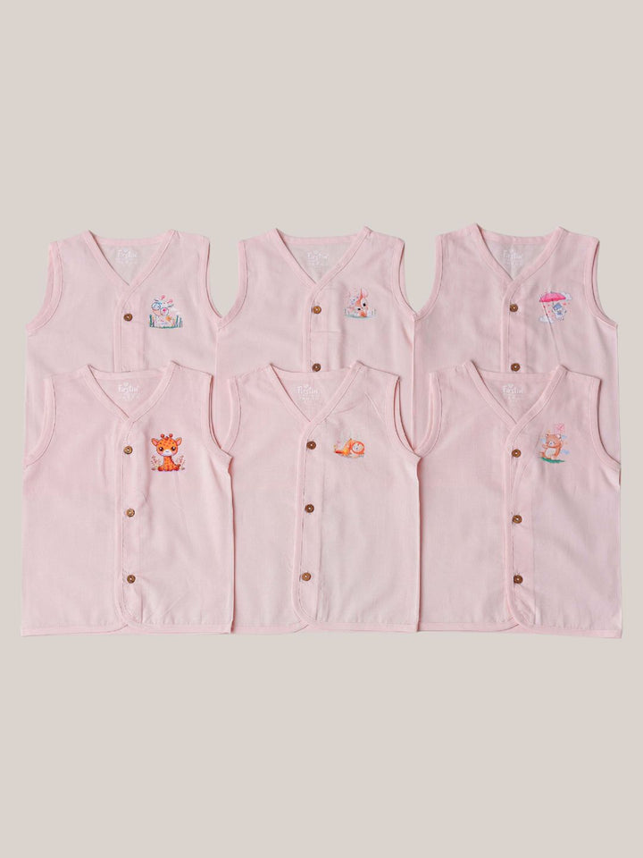 FIRSTIN Organic Cotton Jabla Sleeveless 6 Pcs Combo - Taffy