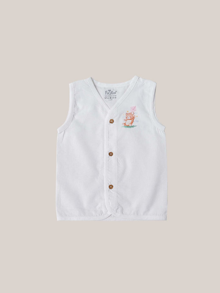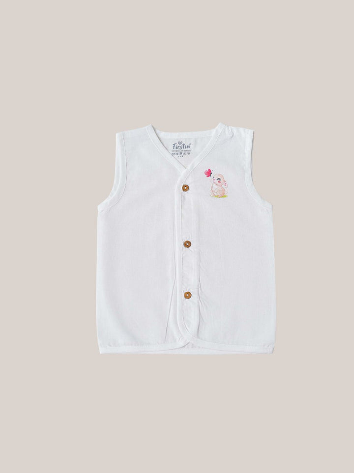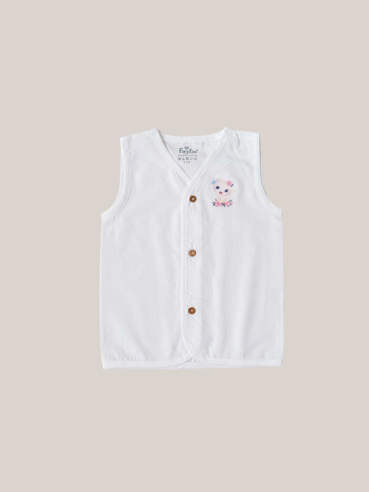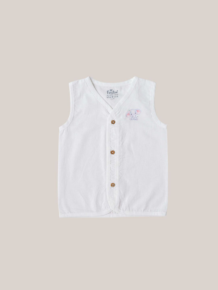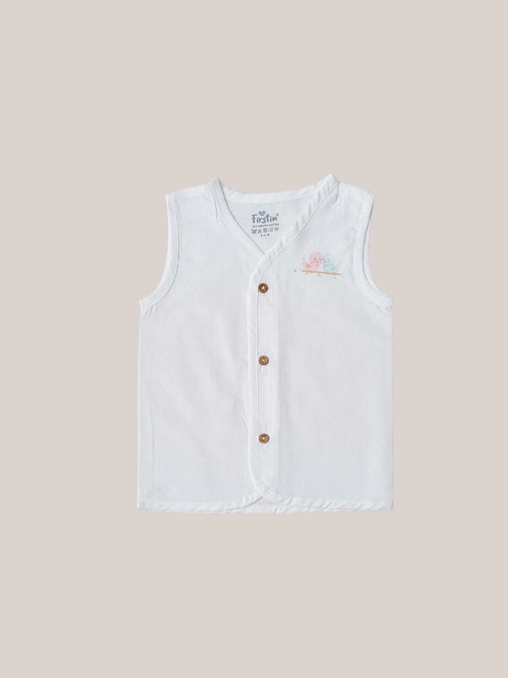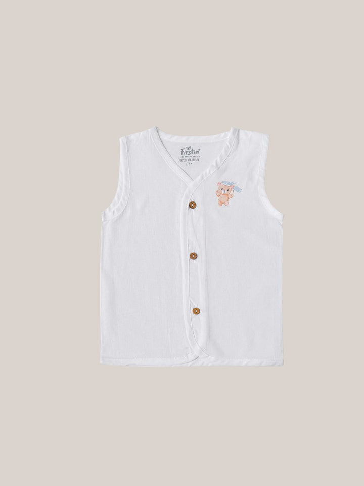FIRSTIN Organic Cotton Jabla Sleeveless 6 Pcs Combo - White