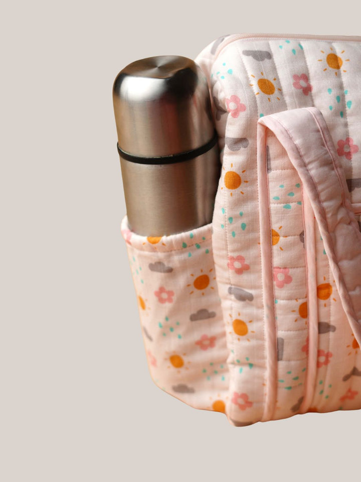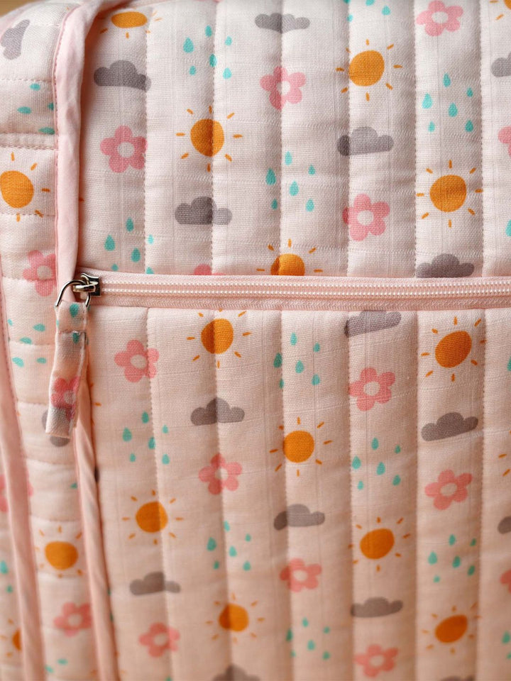 FIRSTIN Muslin Salsa Rose Daisy Cloud Printed Diaper Bag 40X28X14CM