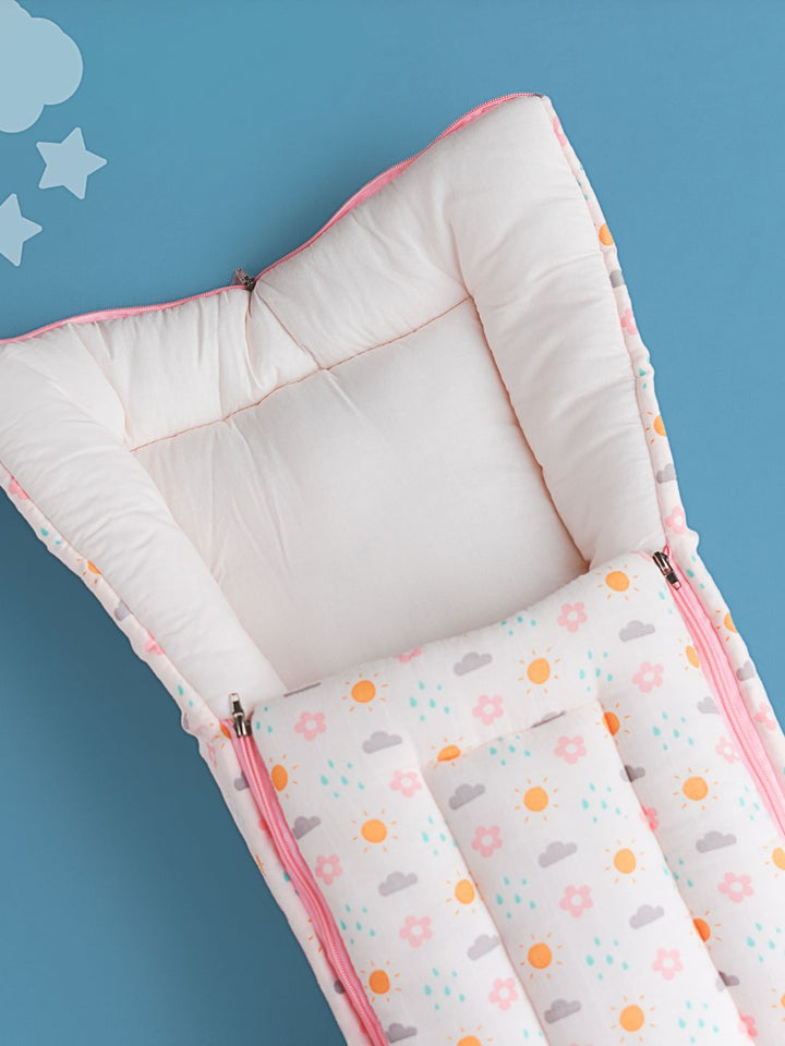 FIRSTIN Salsa Rose-Daisy Cloud Muslin Baby Carrier Nest