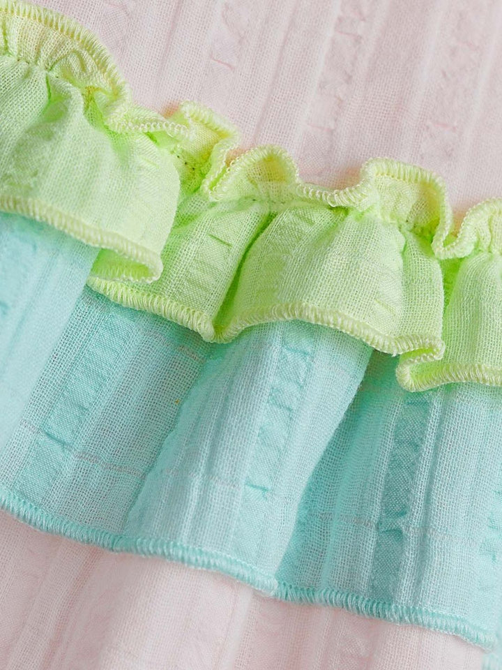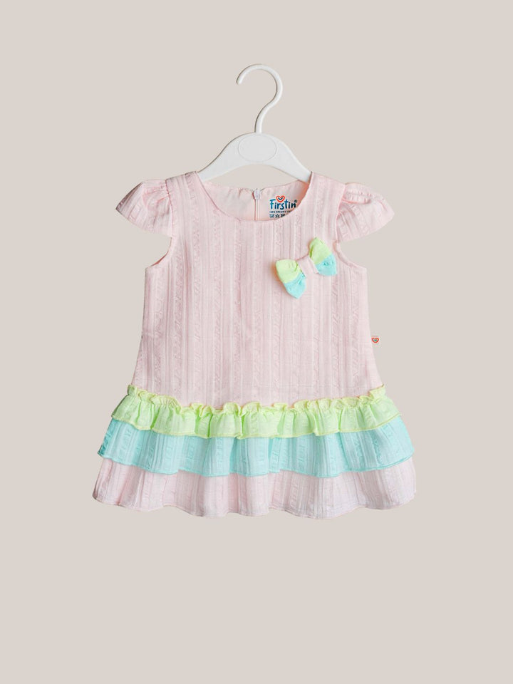FIRSTIN Seer Sucker Muslin Fusion Frock - Lt. Pink