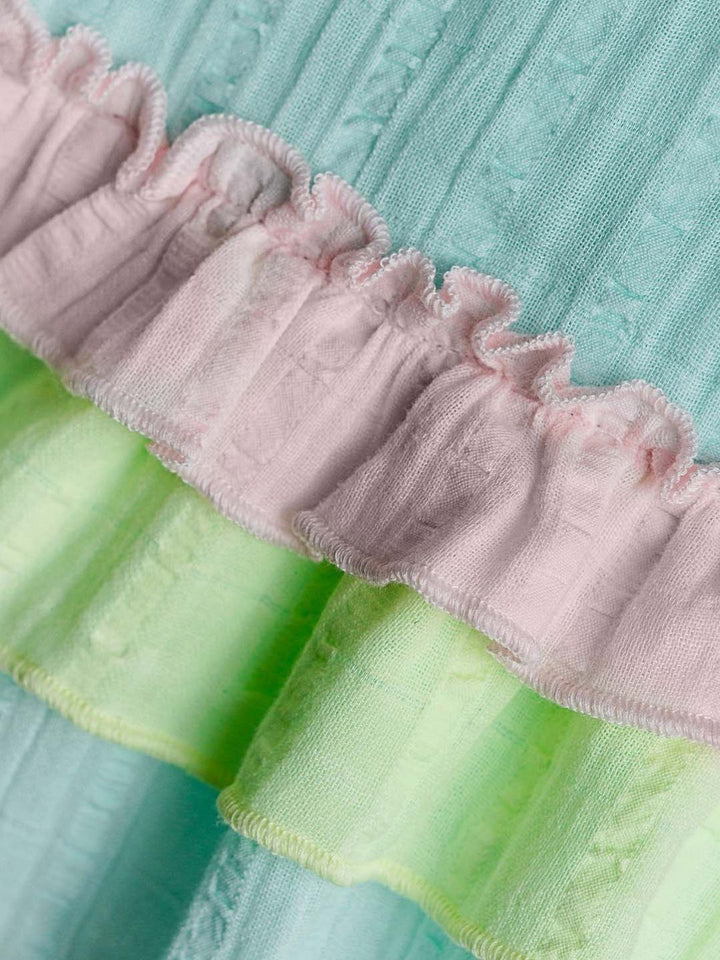 FIRSTIN Seer Sucker Muslin Fusion Frock - Mint