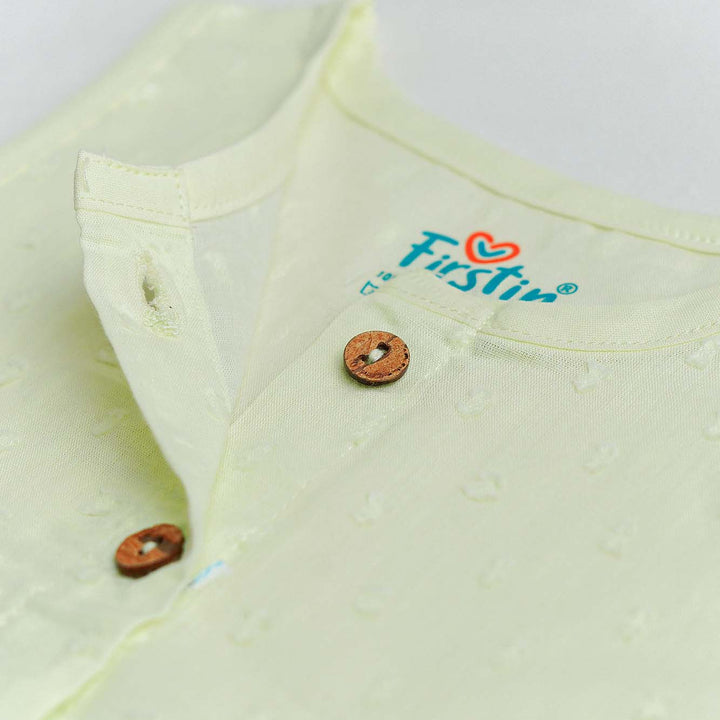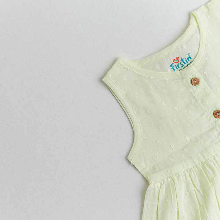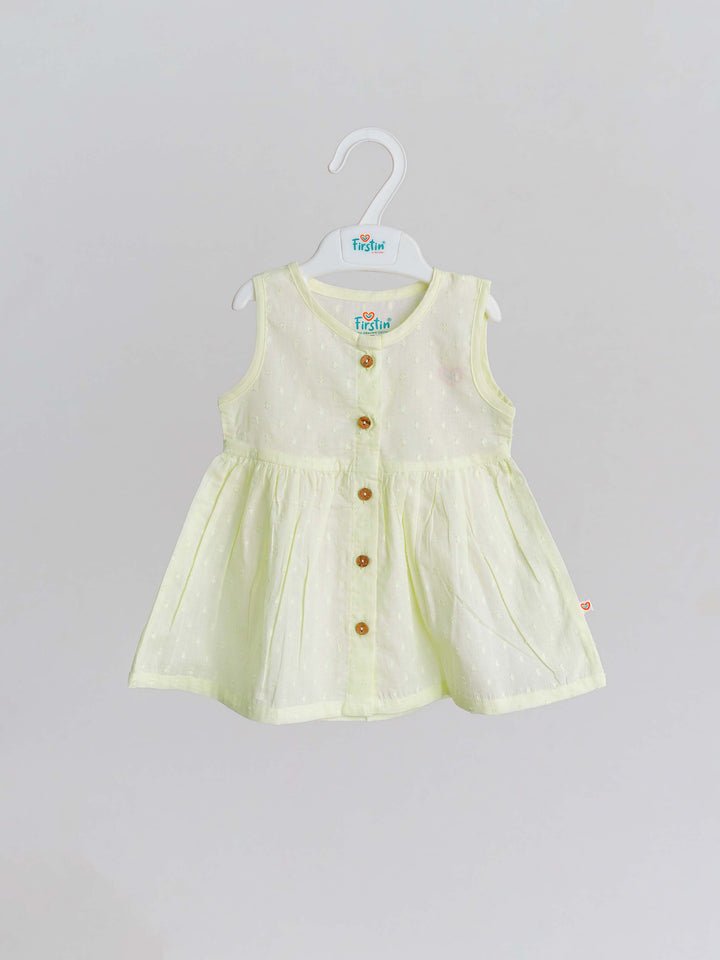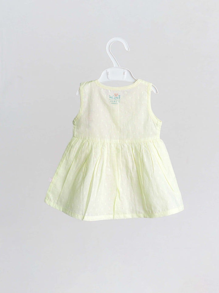 FIRSTIN Swiss Dobby Sleeveless Casual Frock - Lime Cream