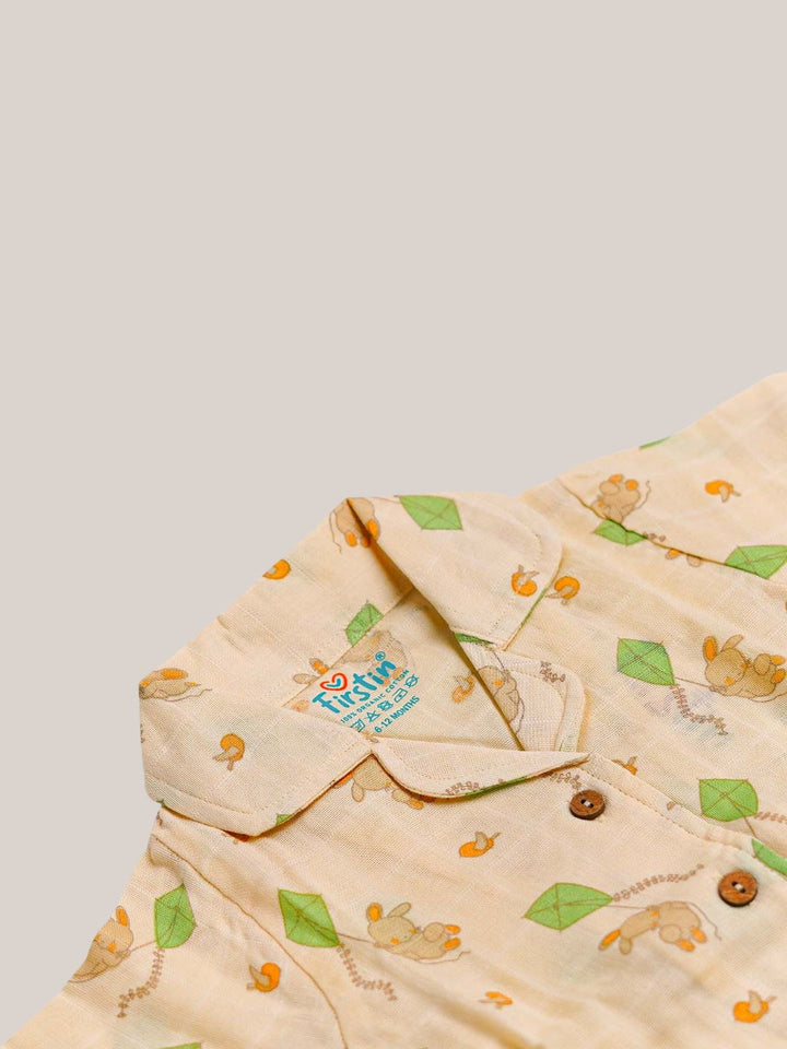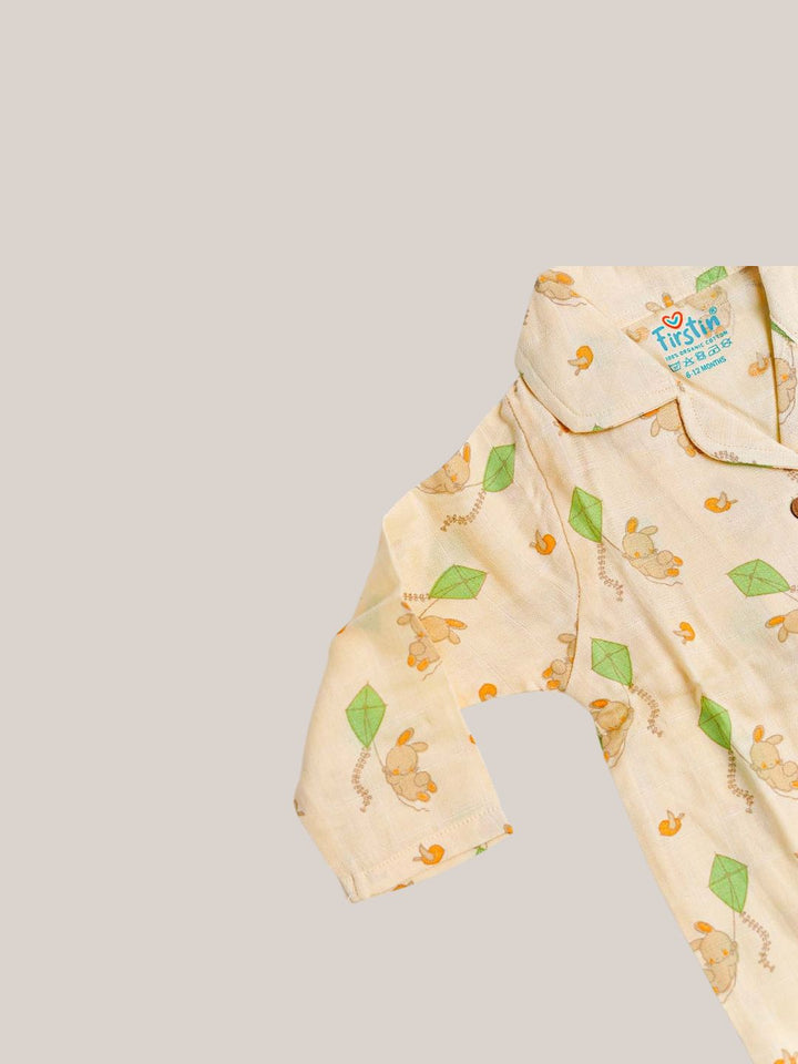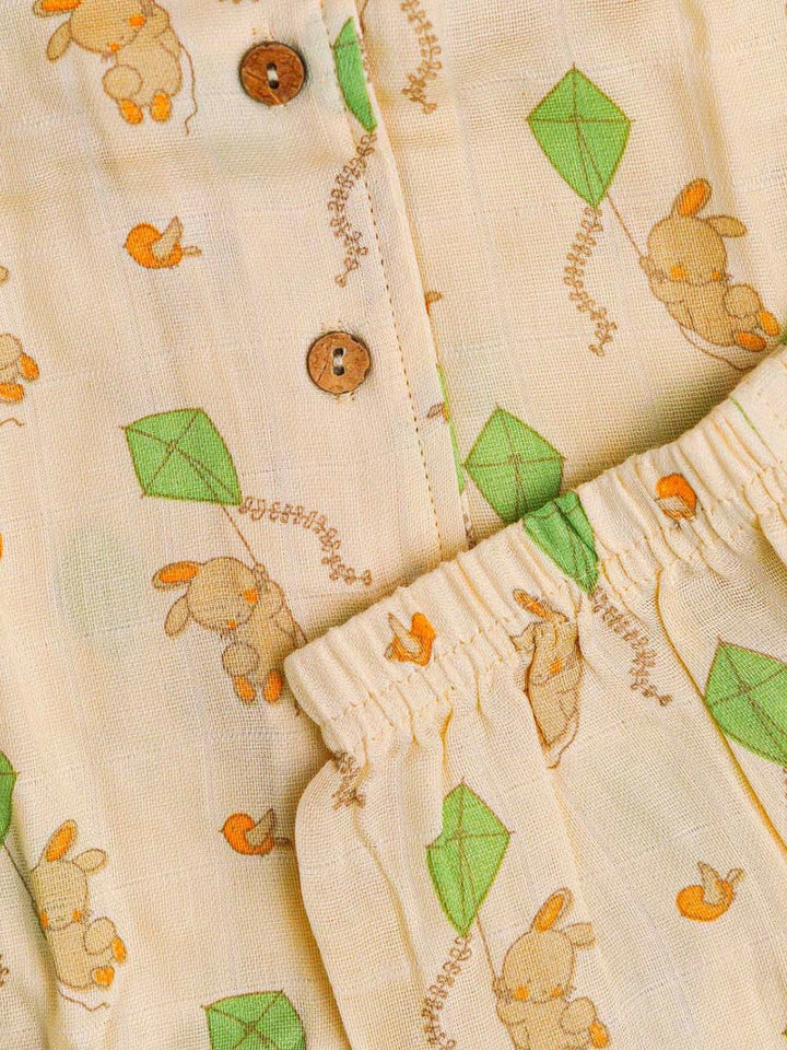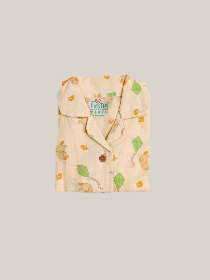 FIRSTIN Vannila Bunny Kite Printed Muslin Night Suit Set
